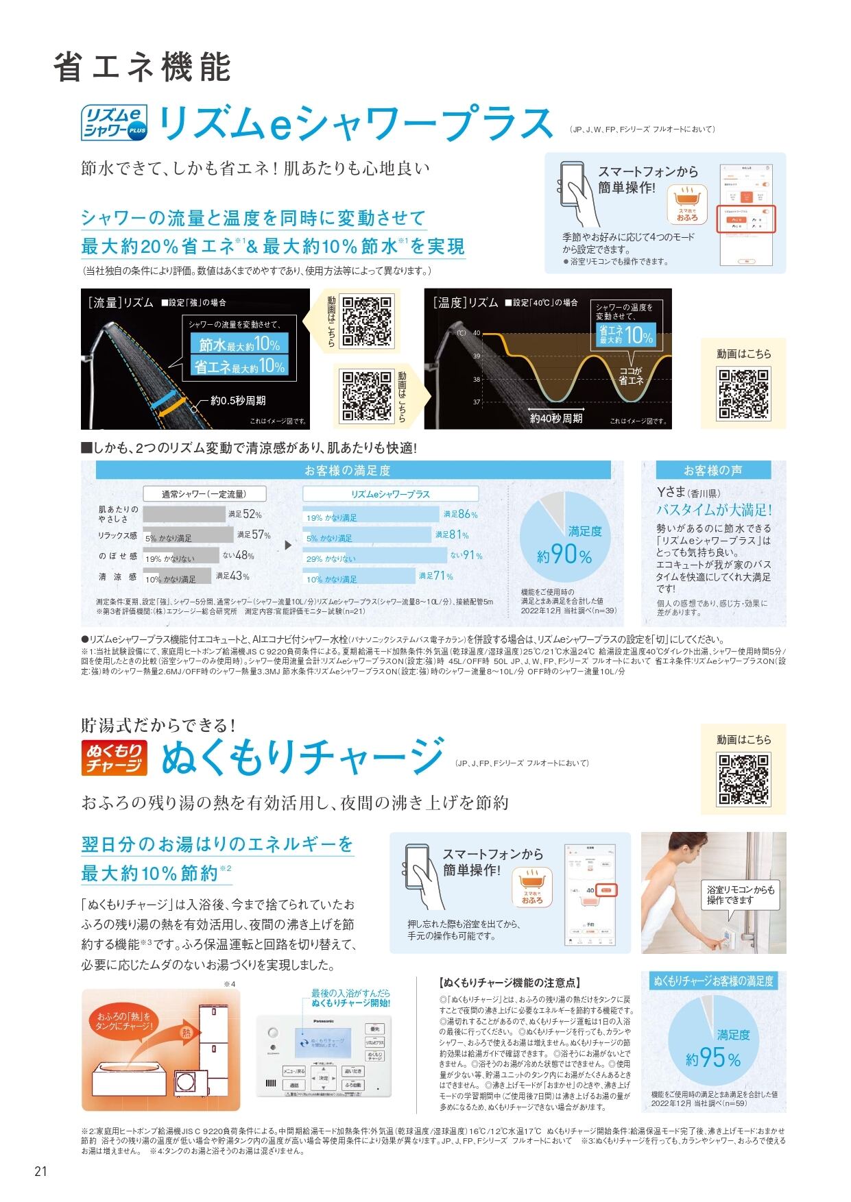 シャワーの温度と流量を同時に変動させることにより、通常シャワーと比較して省エネ最大約20%、節水最大約10%を実現!